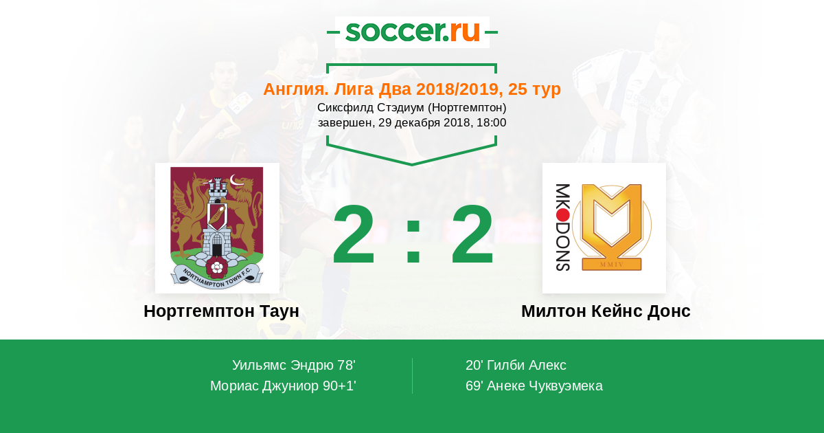 | Нортгемптон Таун | Милтон Кейнс Донс | |