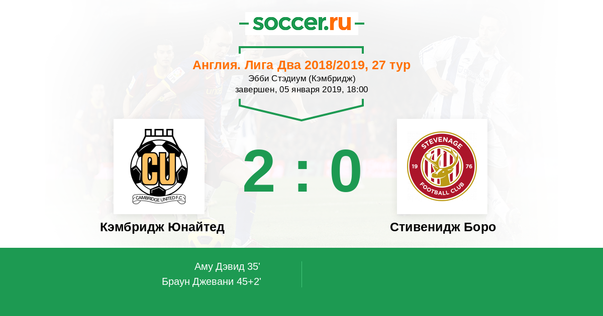| Кэмбридж Юнайтед | Стивенидж Боро | |