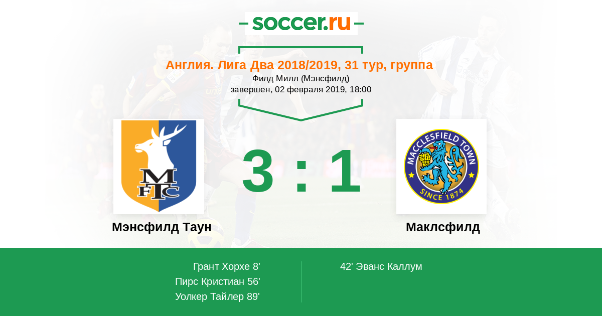 | Мэнсфилд Таун | 37:29 | 23:11 | 14:18 |