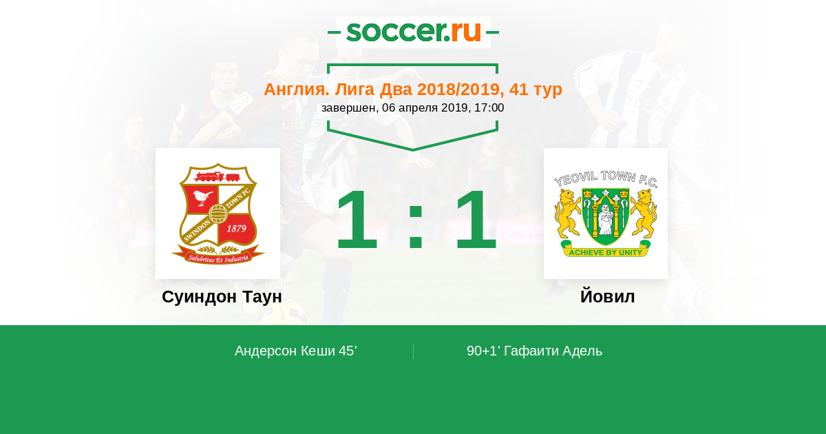 | Суиндон Таун | 8:5 | 2:2 | 6:3 |