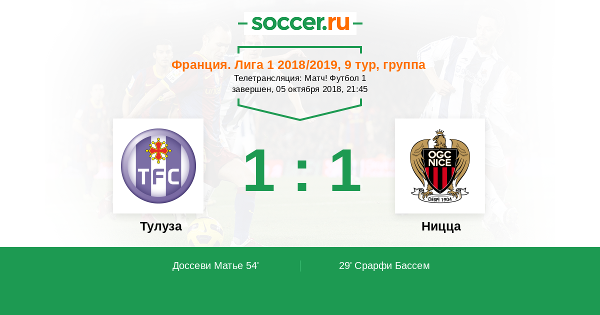| Ницца | 54:49 | 26:17 | 28:32 |