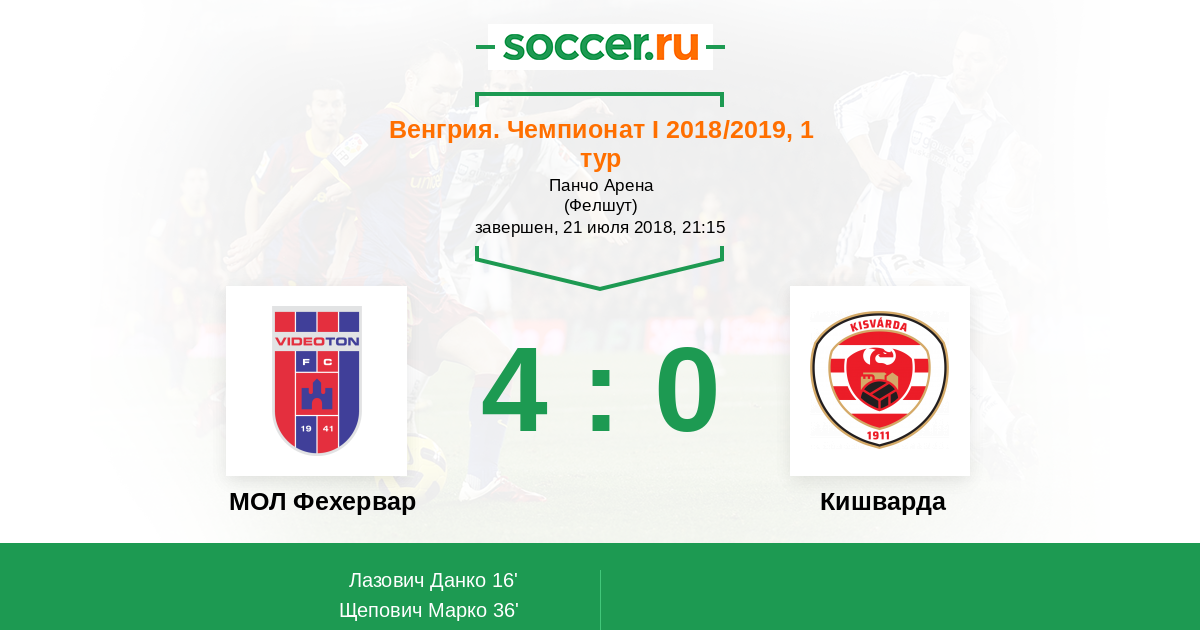 МОЛ Фехервар 2:0 Кишварда