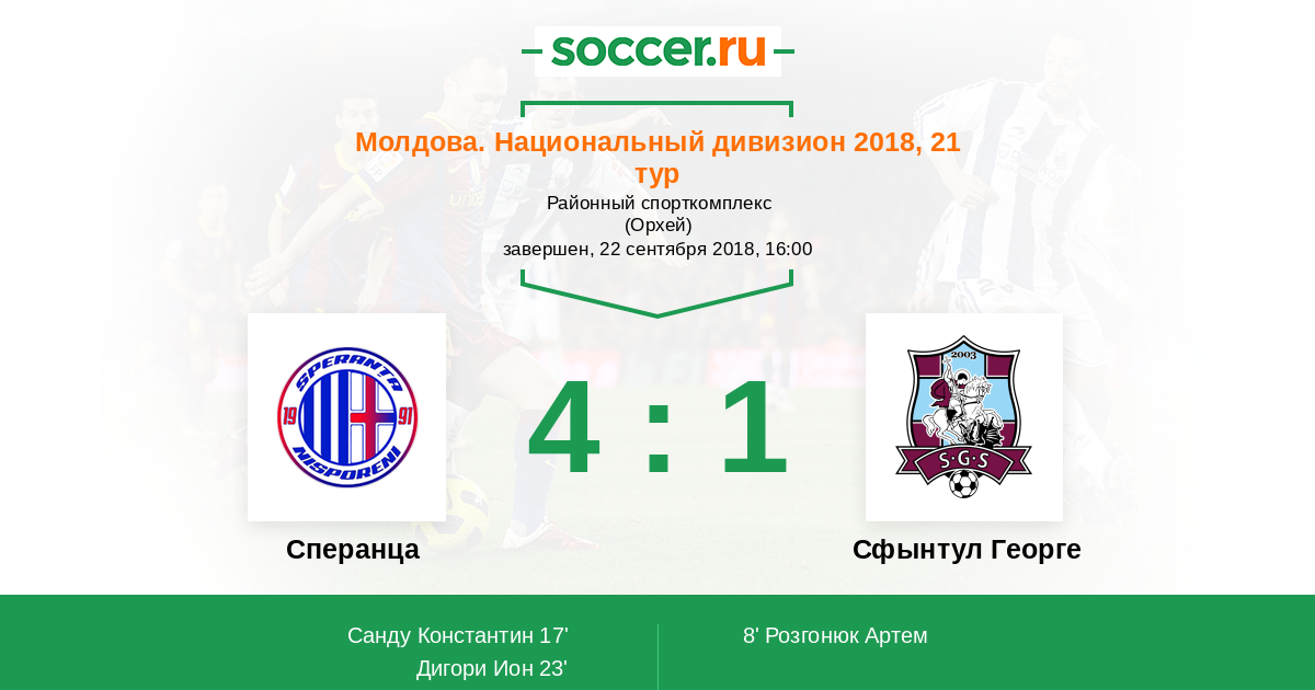 | Сфынтул Георге | 21:15 | 11:8 | 10:7 |