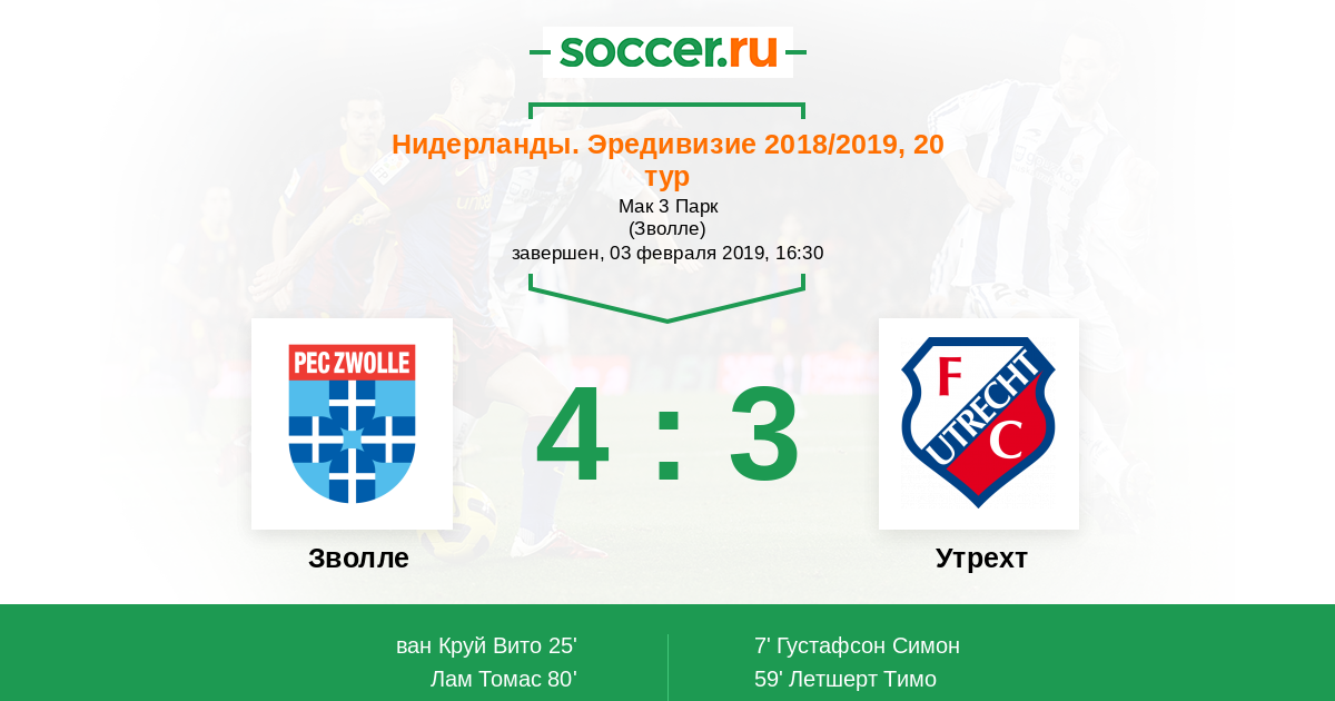 | Утрехт | 57:37 | 36:16 | 21:21 |