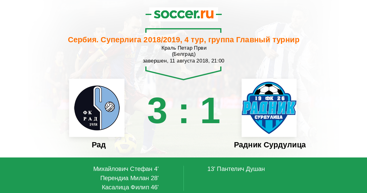 | Сербия. Суперлига | 13 | 5 | 6 | 2 |