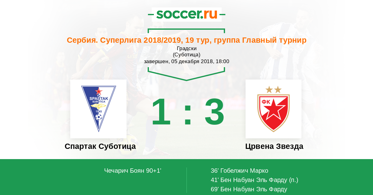 | Спартак Суботица | Црвена Звезда | |