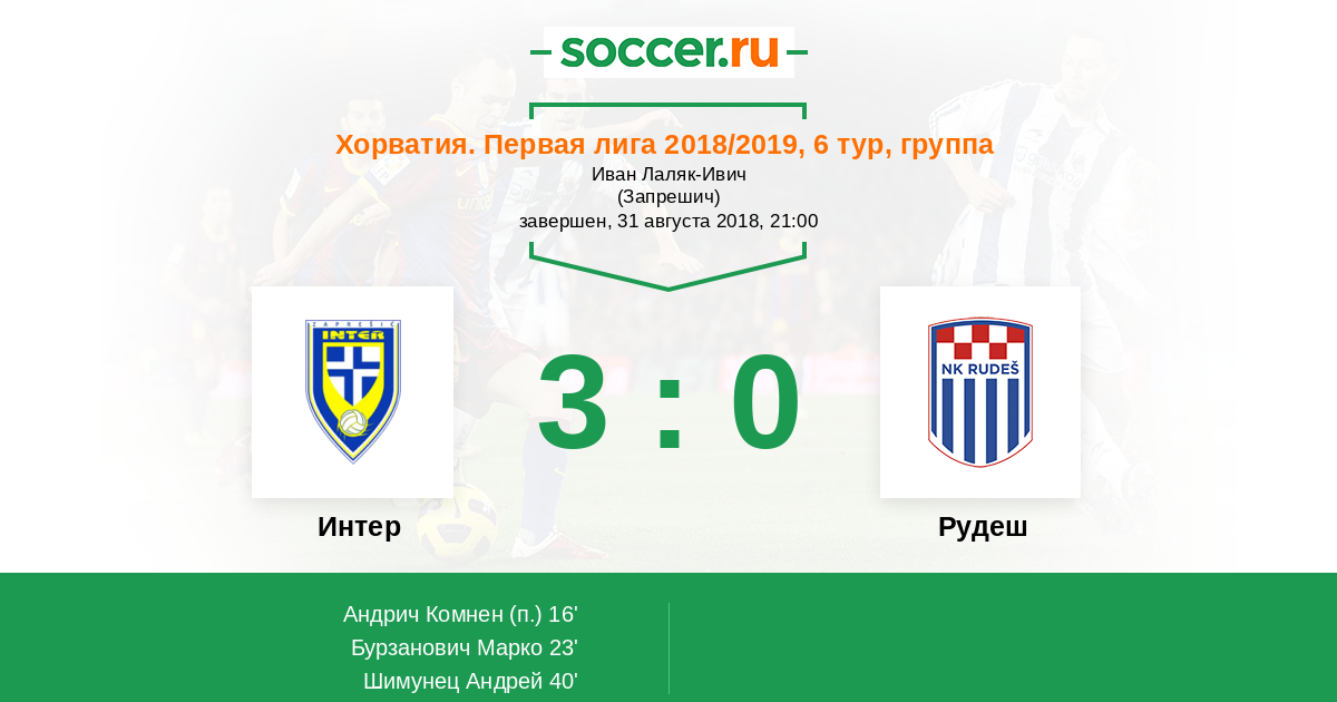 | Интер | Рудеш | |