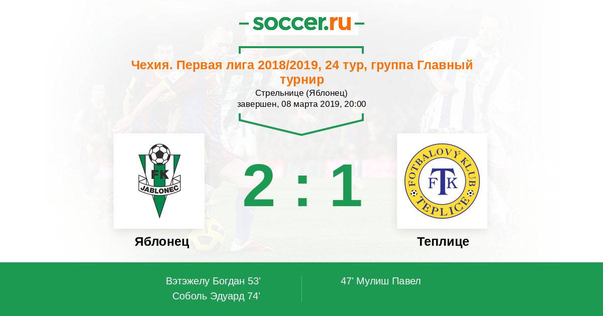 | Яблонец | 77:59 | 39:22 | 38:37 |