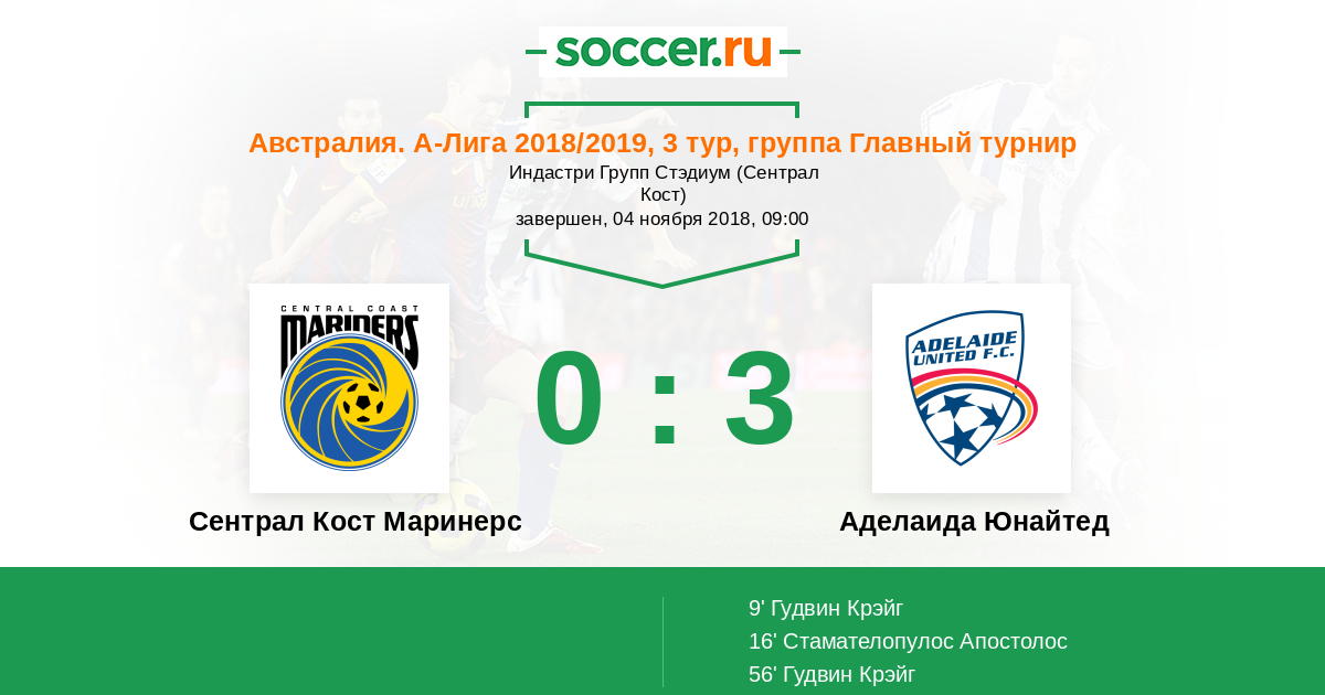 Сентрал Кост Маринерс 3:0 Аделаида Юнайтед