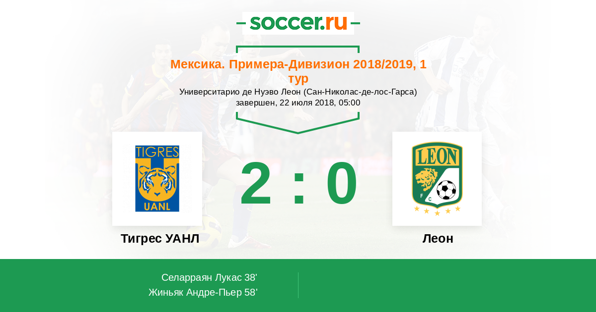 | Тигрес УАНЛ | 41:37 | 26:15 | 15:22 |