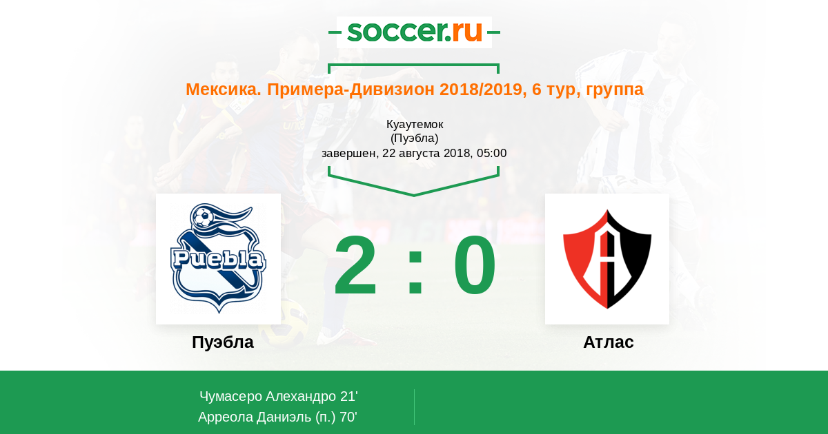 | Пуэбла | 33:38 | 16:20 | 17:18 |