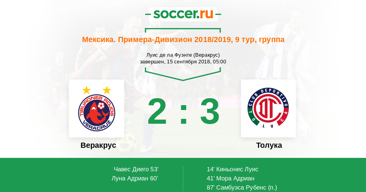 | Веракрус | 30:44 | 16:19 | 14:25 |