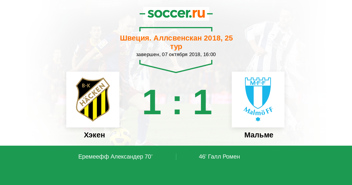 | Хэкен | Мальме | |