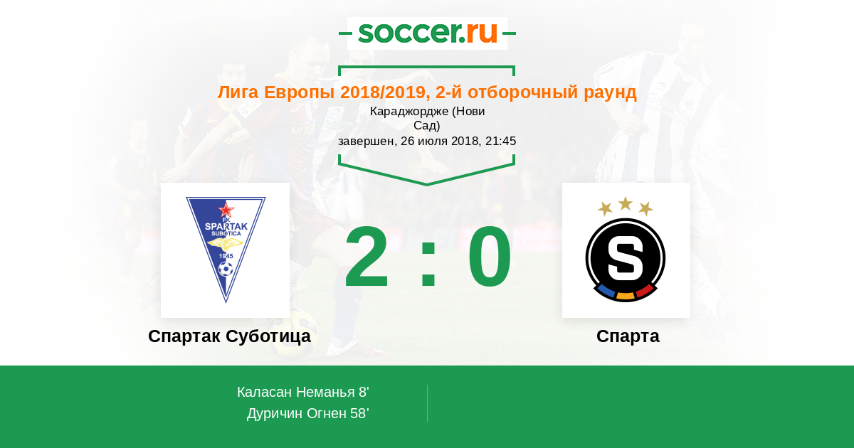 | Спартак Суботица | Спарта | |