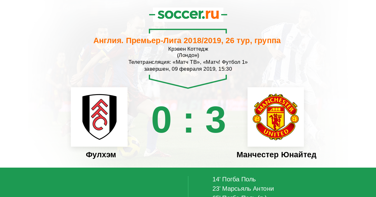 Лондон, Крэвен Коттедж Телетрансляция: «Матч ТВ», «Матч! Футбол 1»