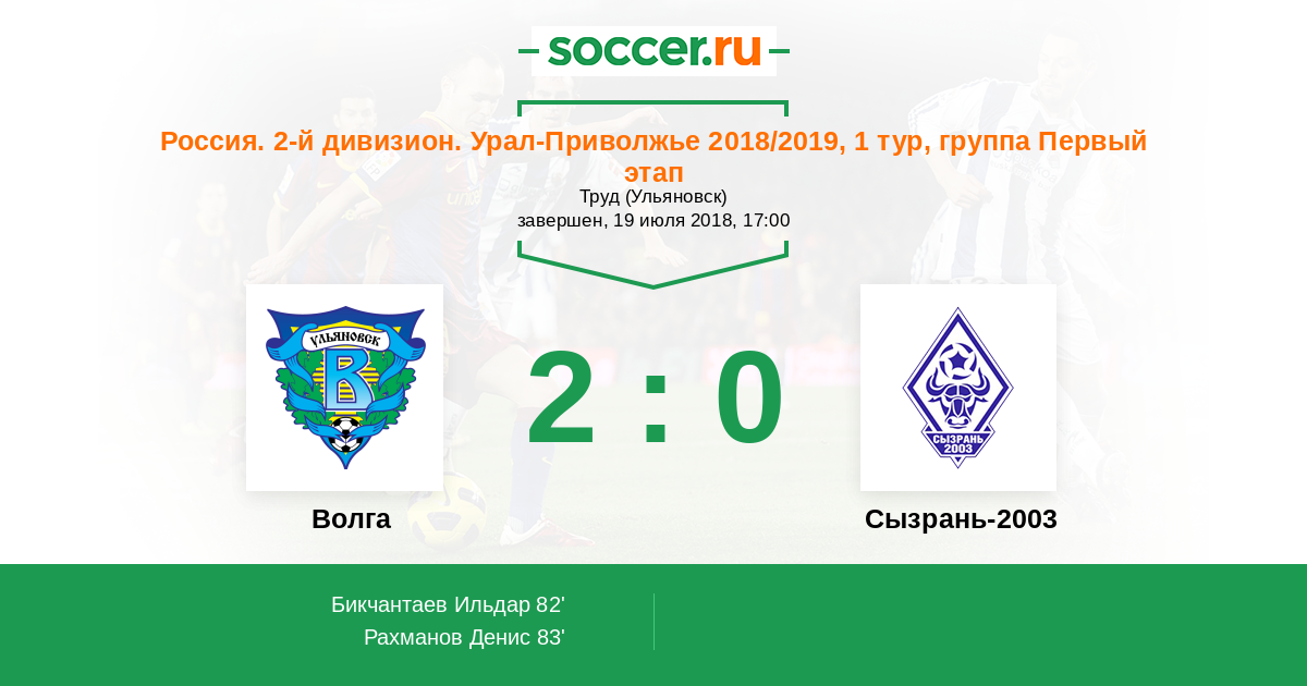| Волга | 26:21 | 17:5 | 9:16 |