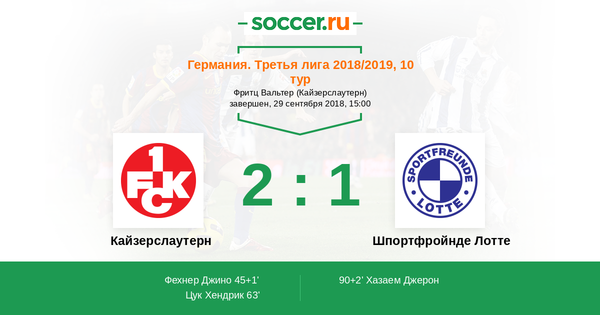 | Кайзерслаутерн | 2:0 | 0:0 | 2:0 |
