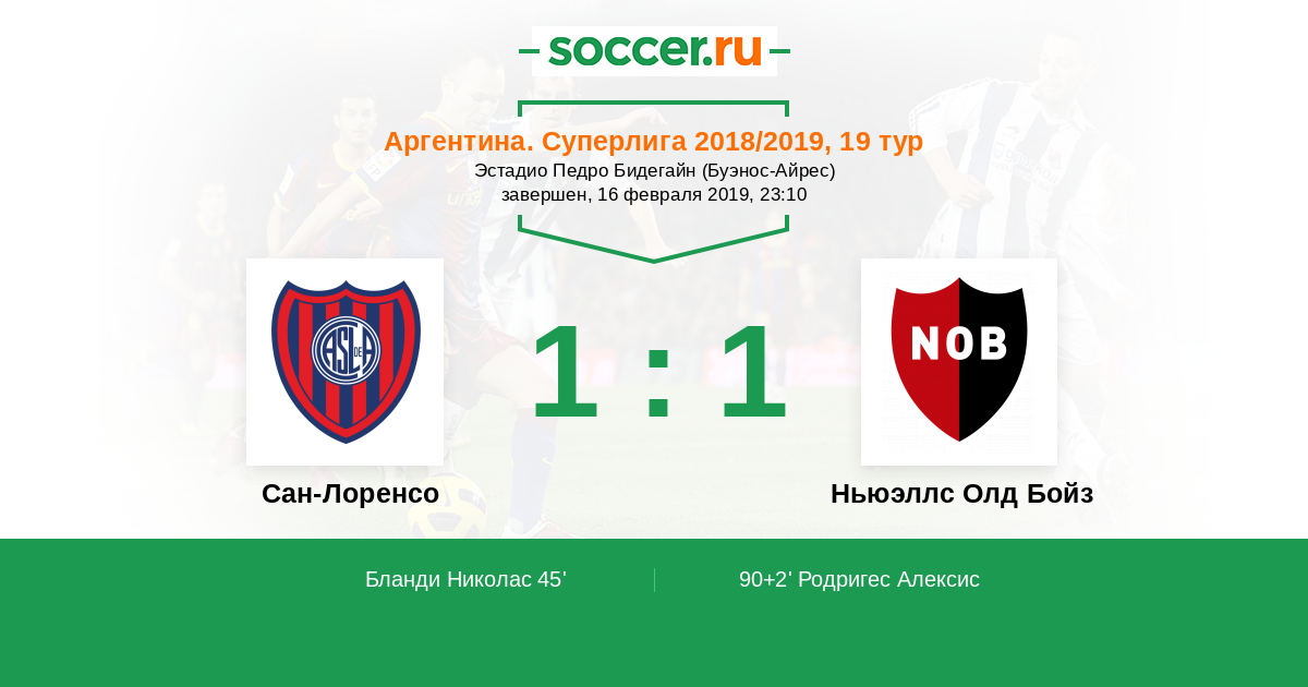 | Сан-Лоренсо | Ньюэллс Олд Бойз | |
