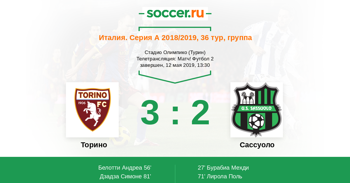 | Сассуоло | 30:42 | 14:19 | 16:23 |