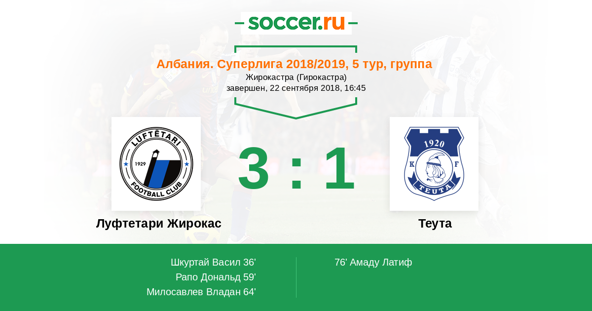 | Луфтетари Жирокас | 22:36 | 14:13 | 8:23 |