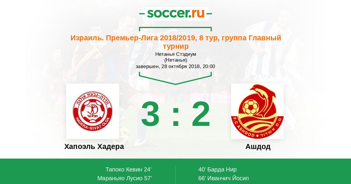 | Хапоэль Хадера | 24:28 | 9:14 | 15:14 |