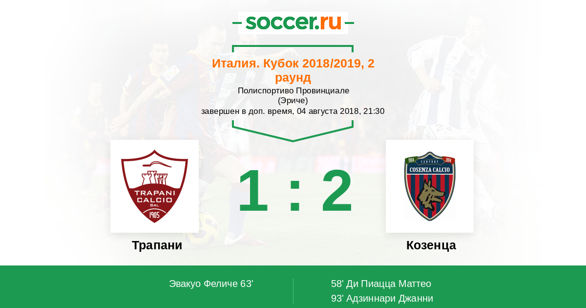 | Козенца | 10:7 | 6:4 | 4:3 |