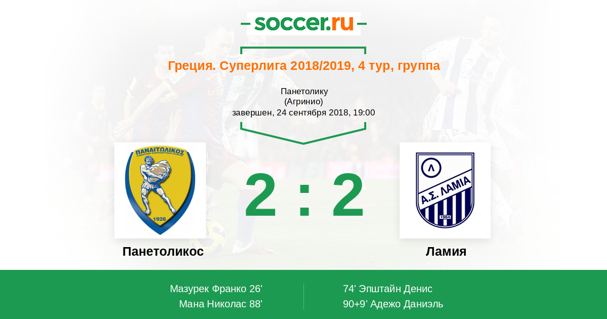 | Панетоликос | 26:23 | 13:13 | 13:10 |