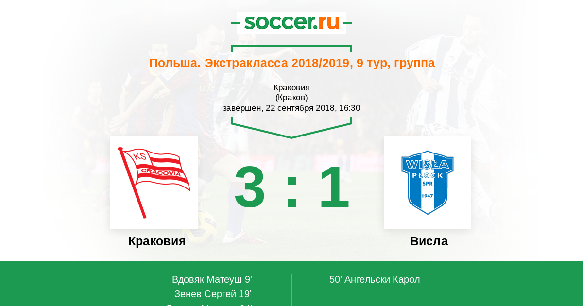 | Краковия | 28:22 | 19:7 | 9:15 |