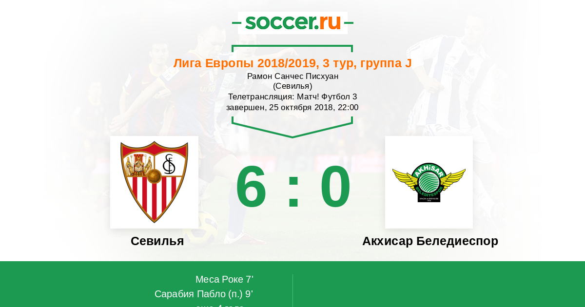 | Севилья | 3:2 | 0:0 | 3:2 |