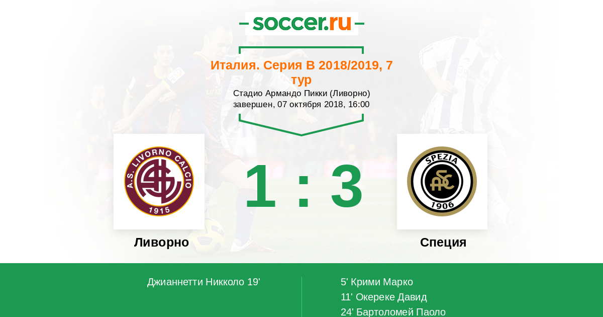 | Ливорно | 4:25 | 2:10 | 2:15 |