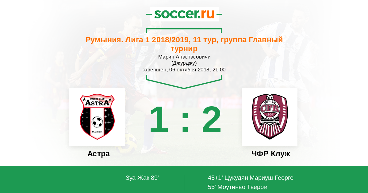 | ЧФР Клуж | 55:30 | 28:13 | 27:17 |