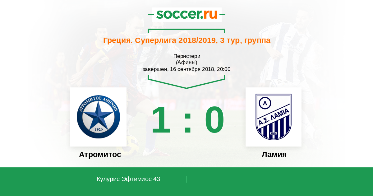 | Атромитос | 38:22 | 21:8 | 17:14 |