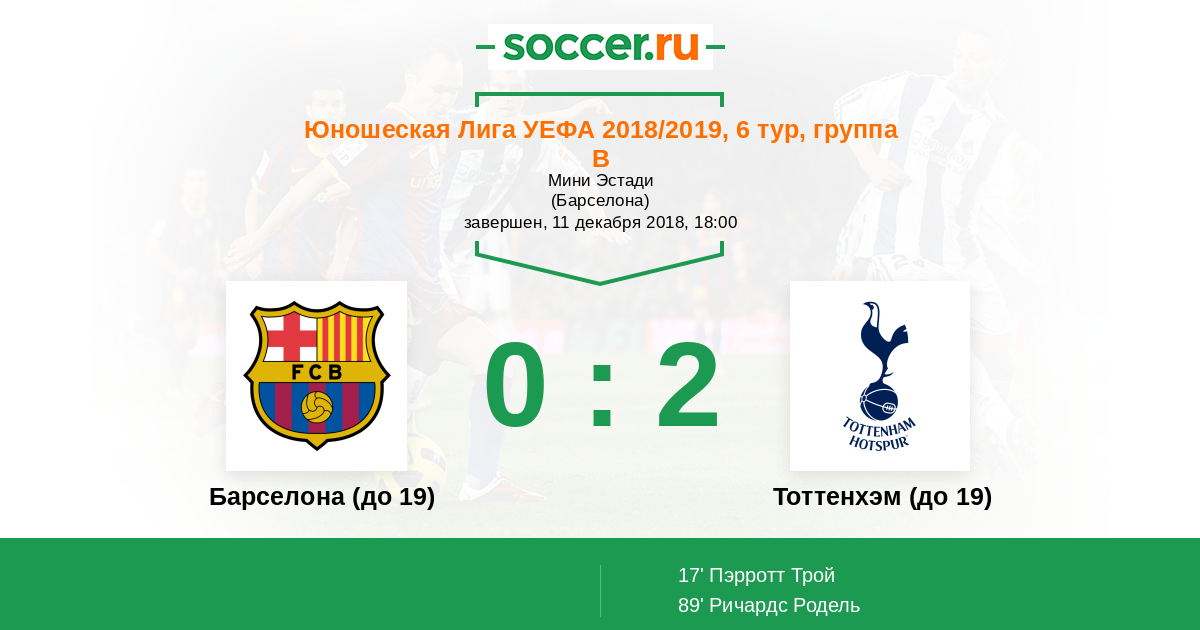 | Барселона (до 19) | Тоттенхэм (до 19) | |