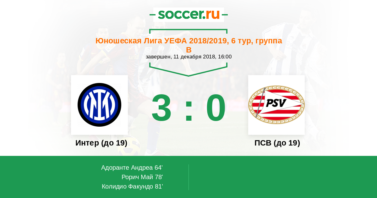 | Интер (до 19) | ПСВ (до 19) | |