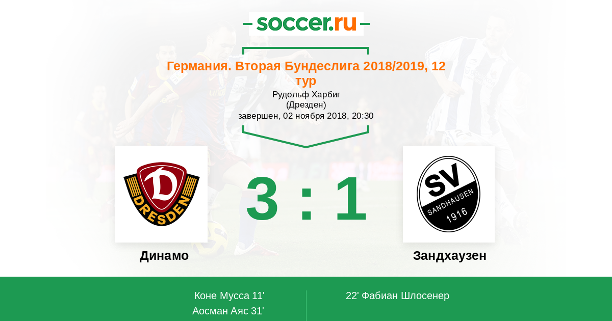 | Зандхаузен | 32:23 | 18:11 | 14:12 |