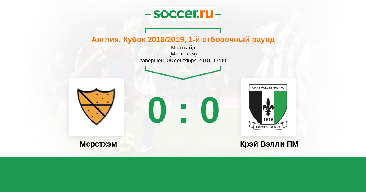 | Мерстхэм | Крэй Вэлли ПМ | |