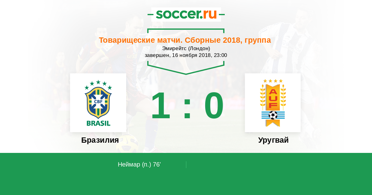 | Бразилия | 36:20 | 18:11 | 18:9 |