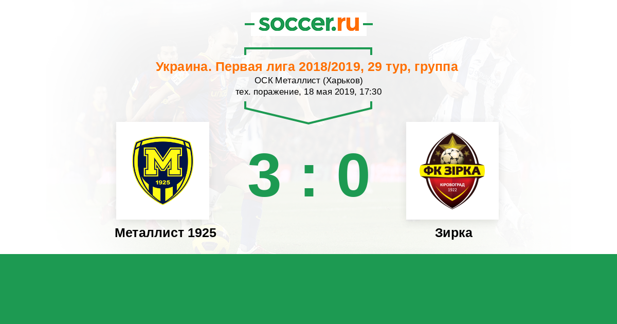 | Металлист 1925 | 3:0 | 0:0 | 3:0 |