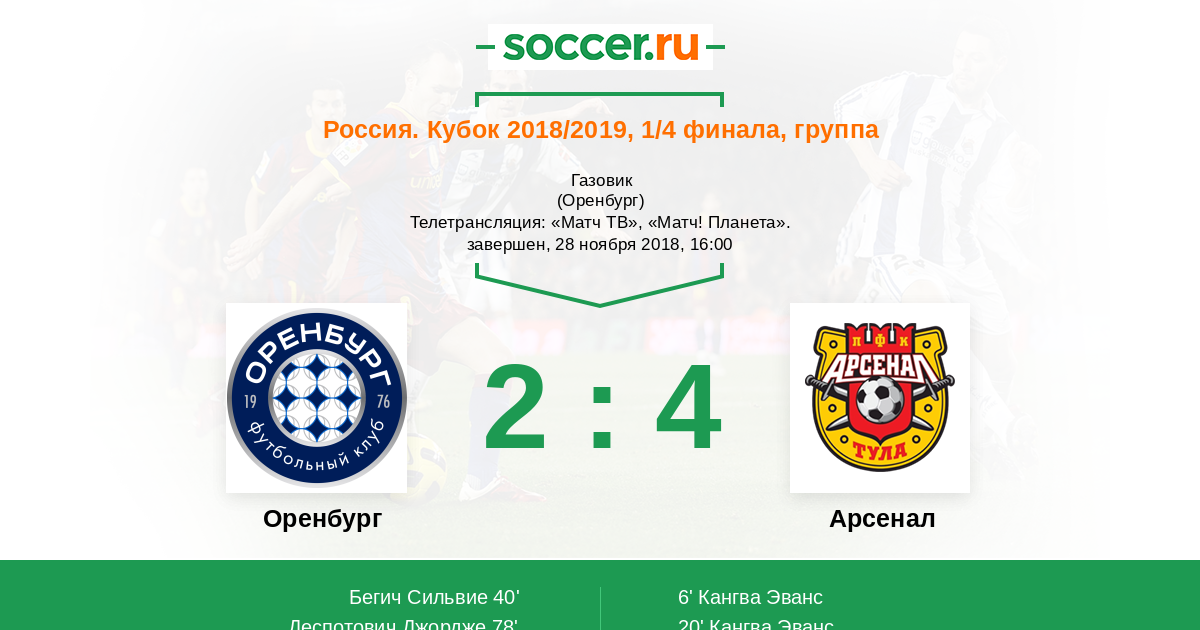 Оренбург, Газовик Телетрансляция: "Матч ТВ", "Матч! Планета".