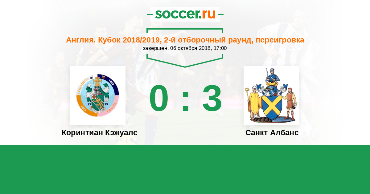 | Коринтиан Кэжуалс | Санкт Албанс | |