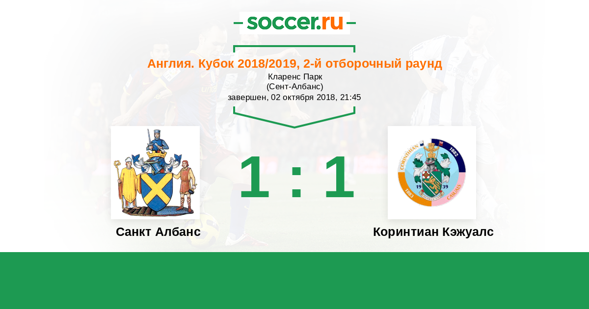 | Санкт Албанс | Коринтиан Кэжуалс | |