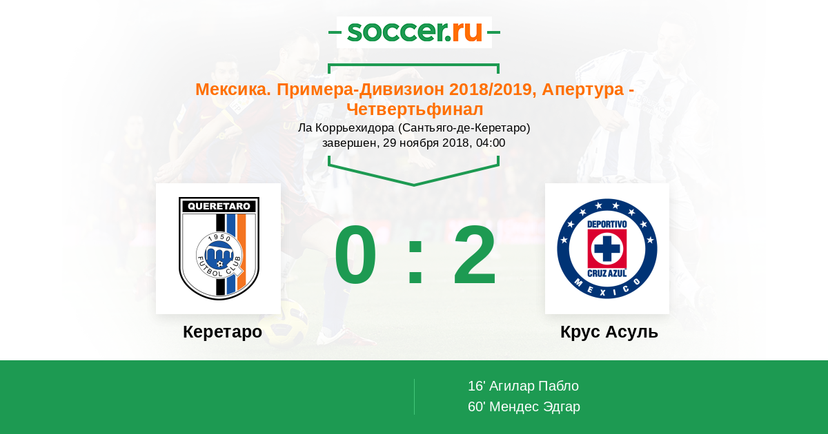 | Крус Асуль | 56:44 | 31:18 | 25:26 |