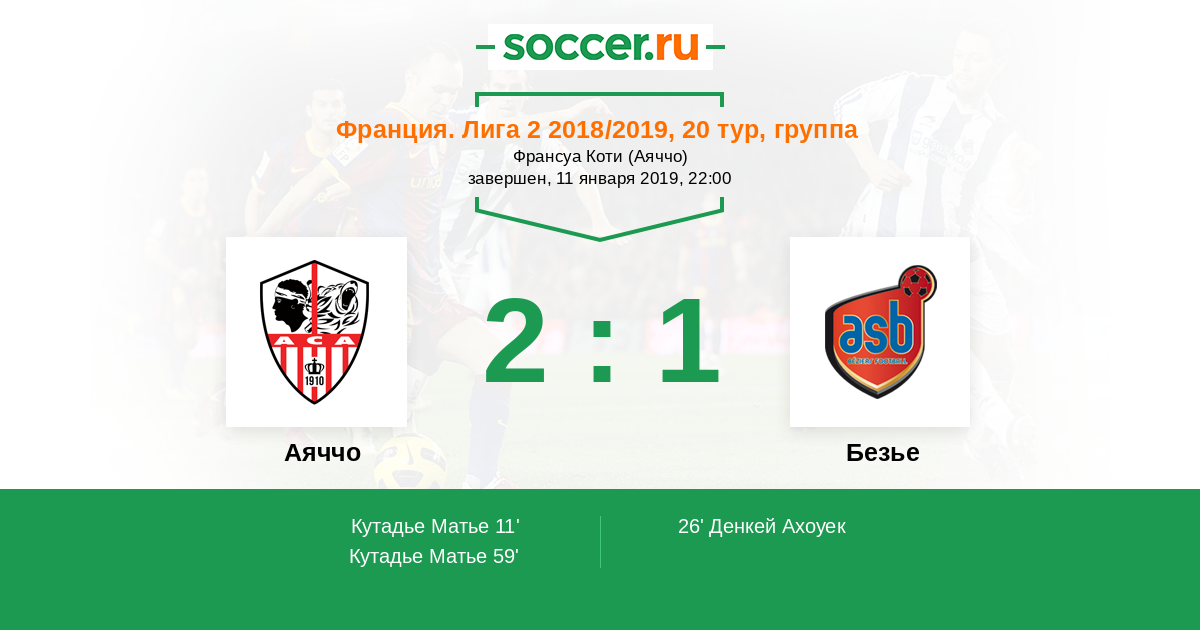 | Аяччо | 1:0 | 0:0 | 1:0 |