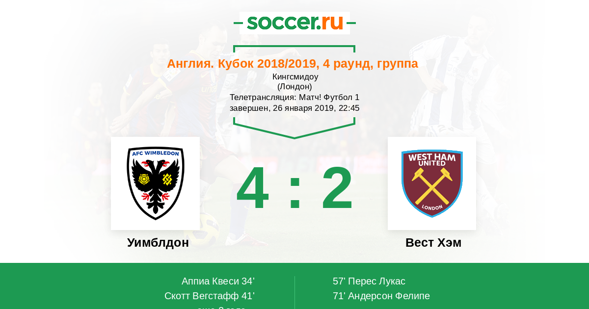 | Уимблдон | 1:3 | 1:3 | 0:0 |