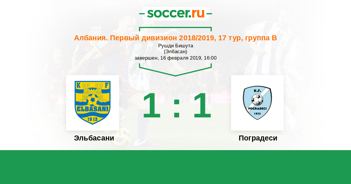 | Эльбасани | 17:25 | 9:12 | 8:13 |