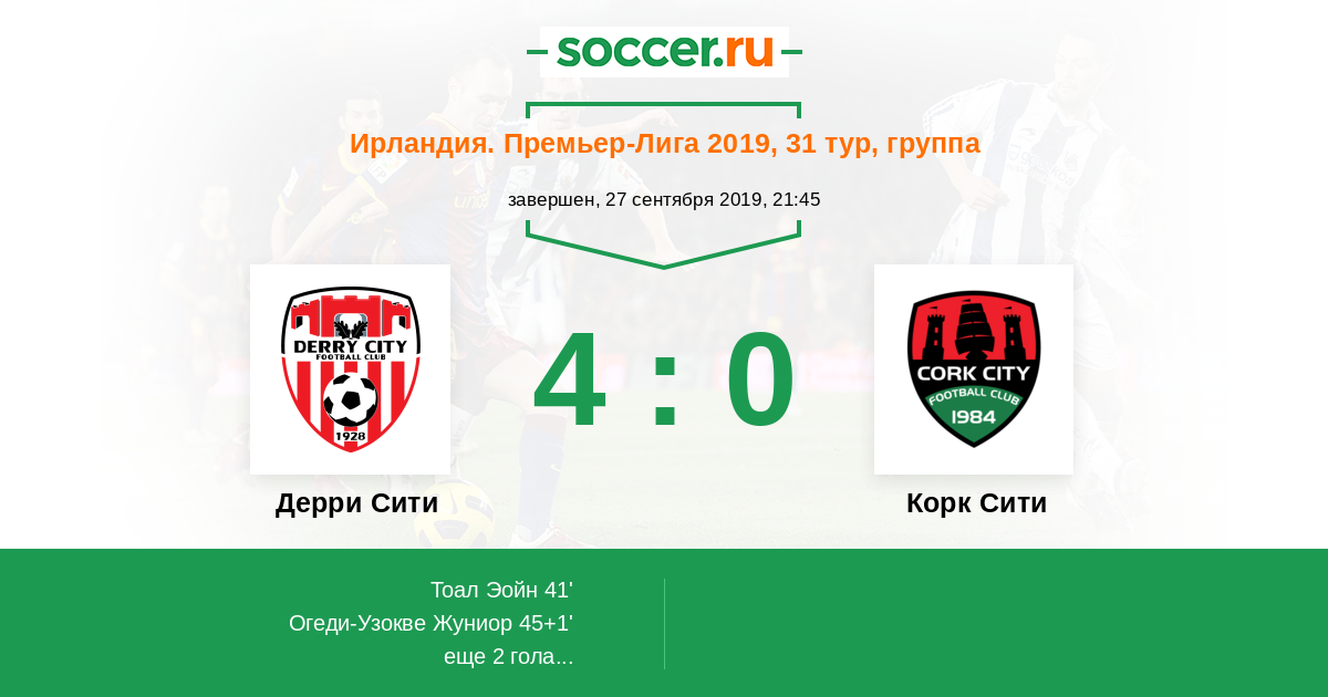 | Дерри Сити | 57:72 | 31:28 | 26:44 |