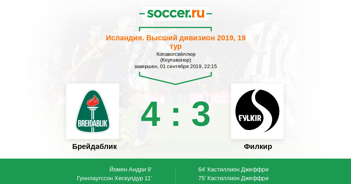 | Исландия. Высший дивизион | 39 | 21 | 10 | 8 |