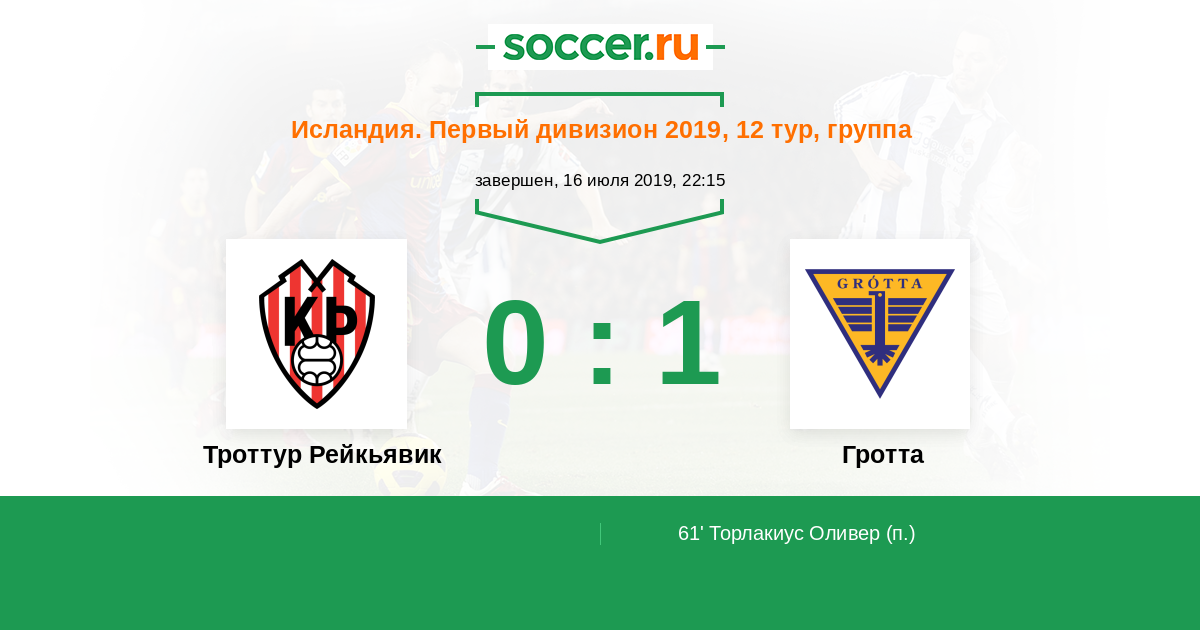 | Троттур Рейкьявик | 31:16 | 12:7 | 19:9 |