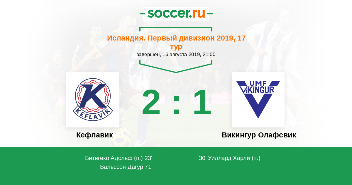 | Викингур Олафсвик | 1:11 | 0:5 | 1:6 |