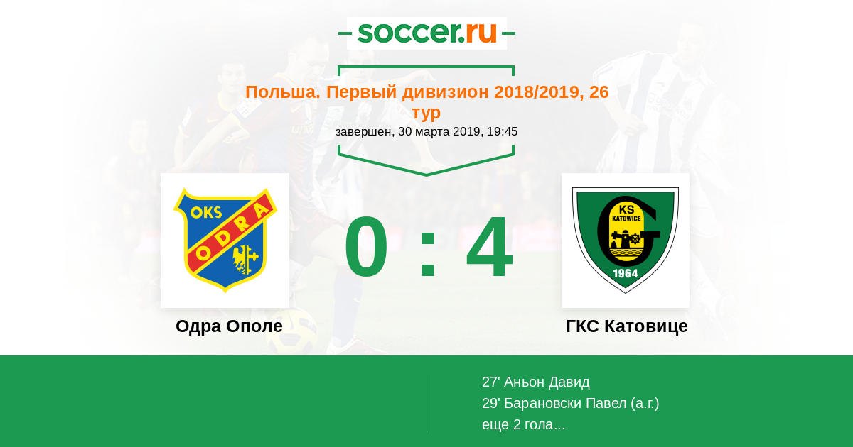 | ГКС Катовице | 17:20 | 10:11 | 7:9 |